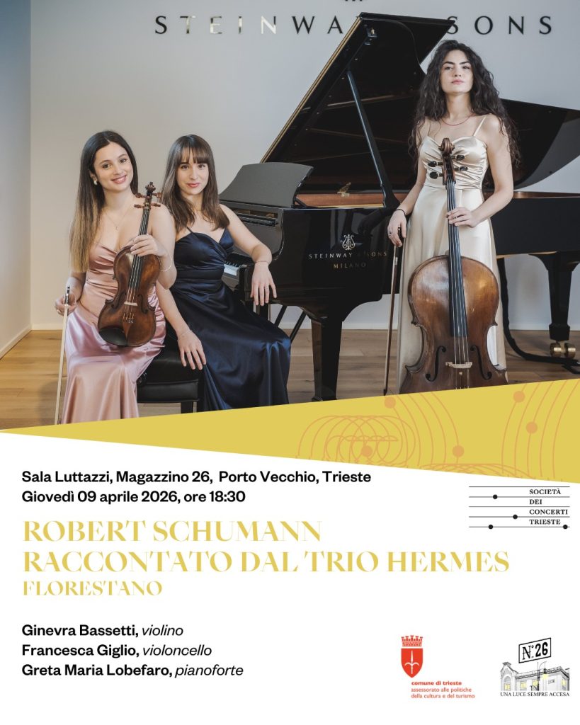 Robert Schumann raccontato dal Trio Hermes – Florestano presso la Sala Luttazzi del Magazzino 26, Porto Vecchio – Porto Vivo nella giornata di giovedì 9 aprile 2026, ore 18:30 – Ingresso a pagamento